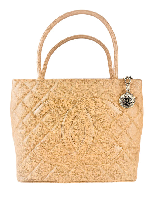 Chanel Beige Caviar Leather Medallion Tote Bag